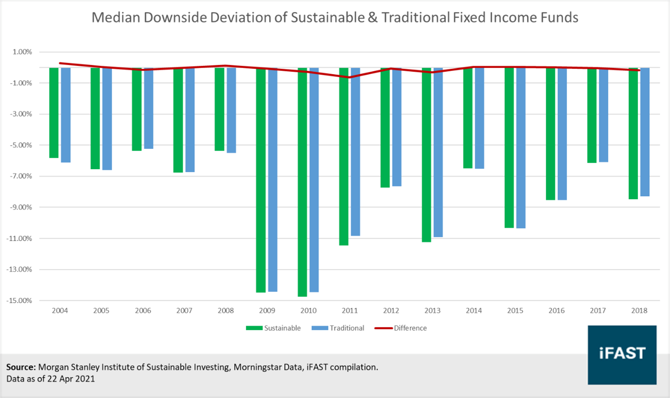 Chart 2: Historical Downside Deviation of Sustainable vs Traditional Fixed Income Funds