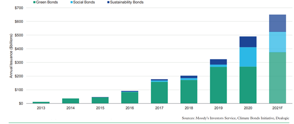 Chart 3: ESG Bond Issuance set to hit 650 billion in 2021