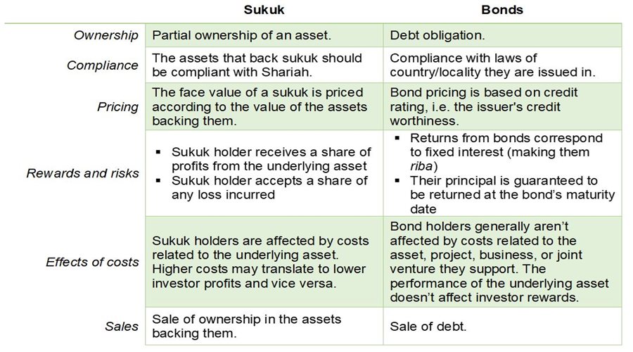 Think of Sukuk as Islamic bonds that are structured in a way to generate returns to investors and similar to an asset-backed security. They are issued and traded in compliance with the principles of Shariah, which prohibit “riba” or interest.